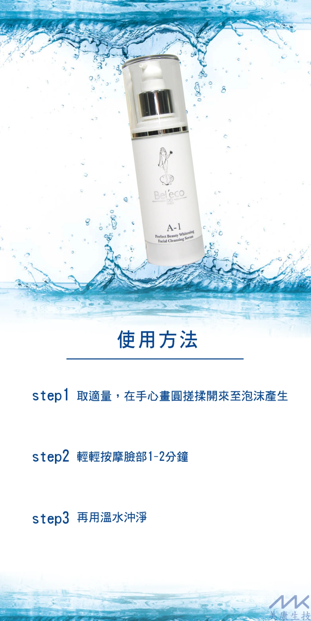 用法:取適量,在手心畫圓搓揉開至泡沫產生後,輕輕按摩臉部1-2分鐘,再用溫水沖淨。