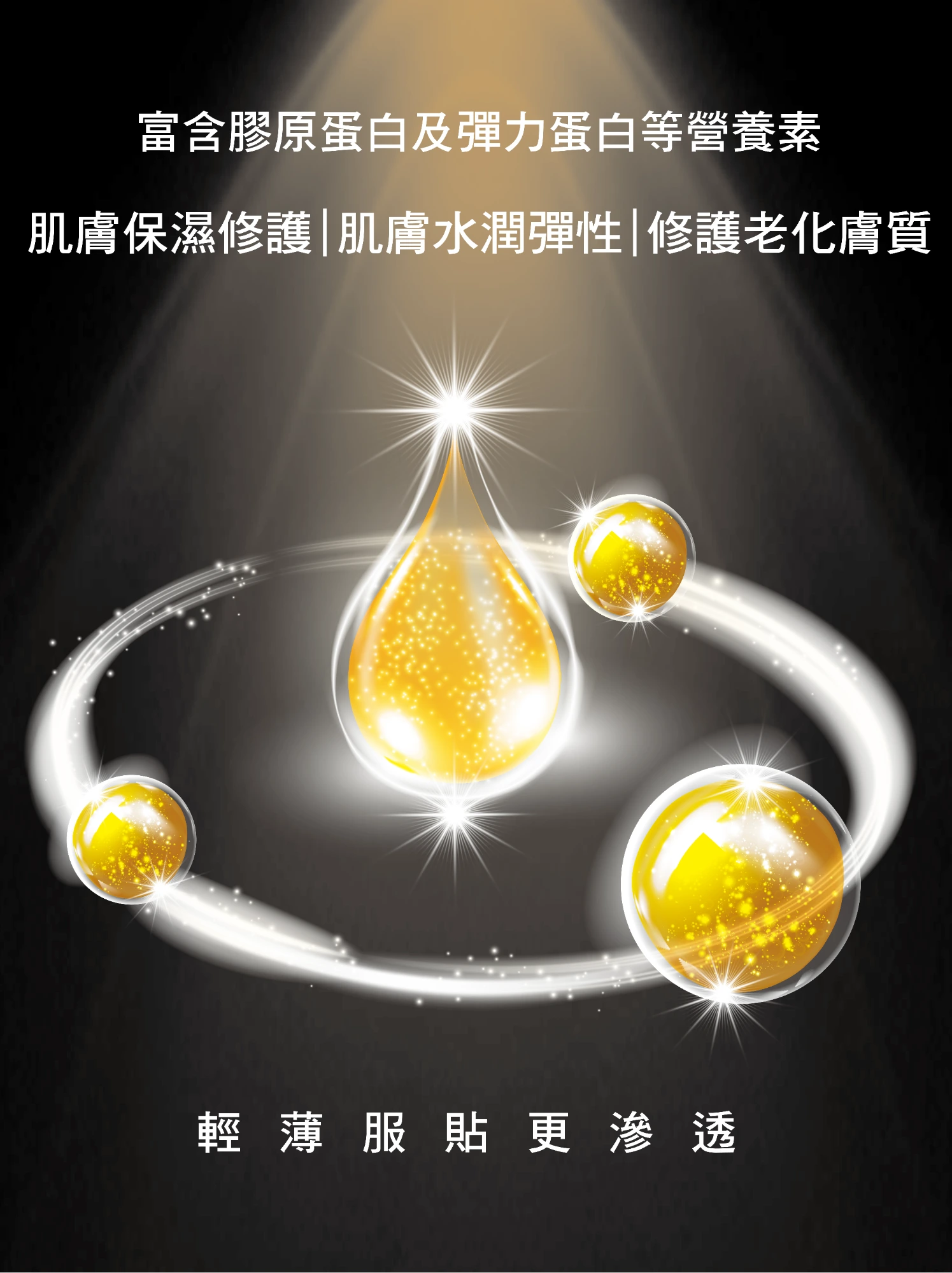 富含膠原蛋白及彈力蛋白等營養素,給予肌膚保濕修護,有效提升肌膚水潤彈性、修護老化乾荒膚質,